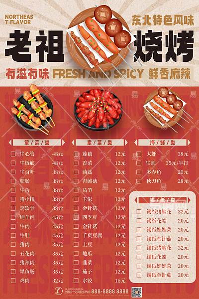 当前的位置:首页 > 广告设计 > 画册/装帧 > 菜谱设计 > 红色复古风东北烧烤店菜单价目表海报