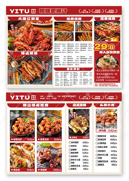当前的位置:首页 > 广告设计 > 画册/装帧 > 菜谱设计 > 红色烧烤餐饮饭店菜单横版红色简约印刷物料