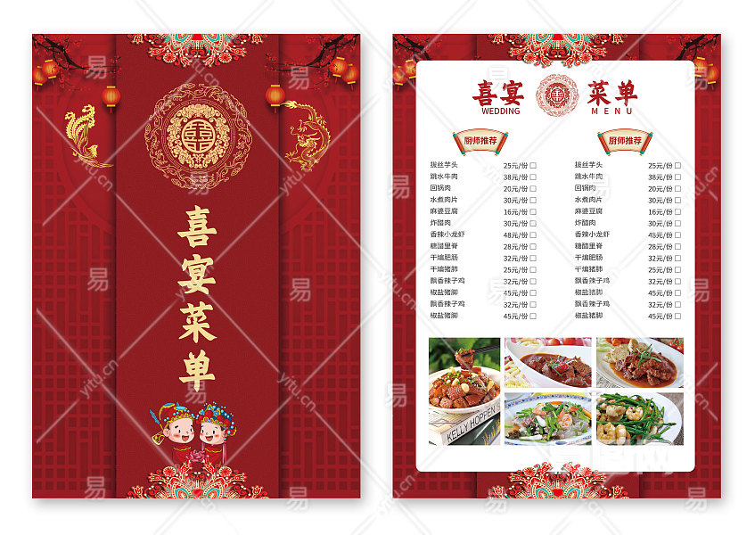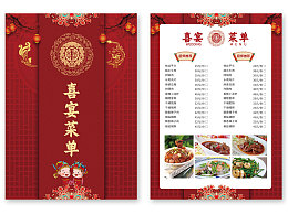 红色中国经典红中国风简约风喜宴菜单婚宴菜单宴会菜单