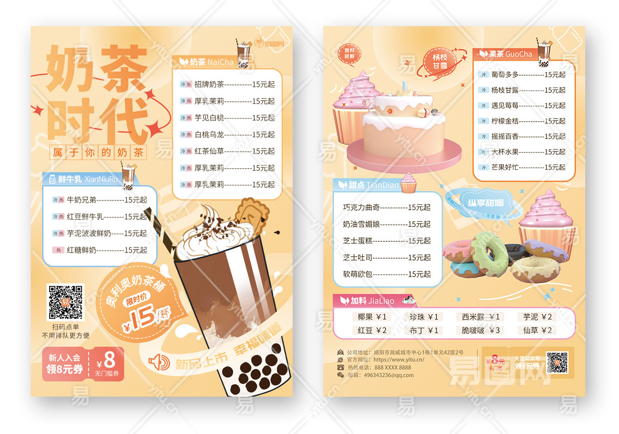 当前的位置:首页 > 广告设计 > 画册/装帧 > 菜谱设计 > 黄色清新简约奶茶店菜单宣传单