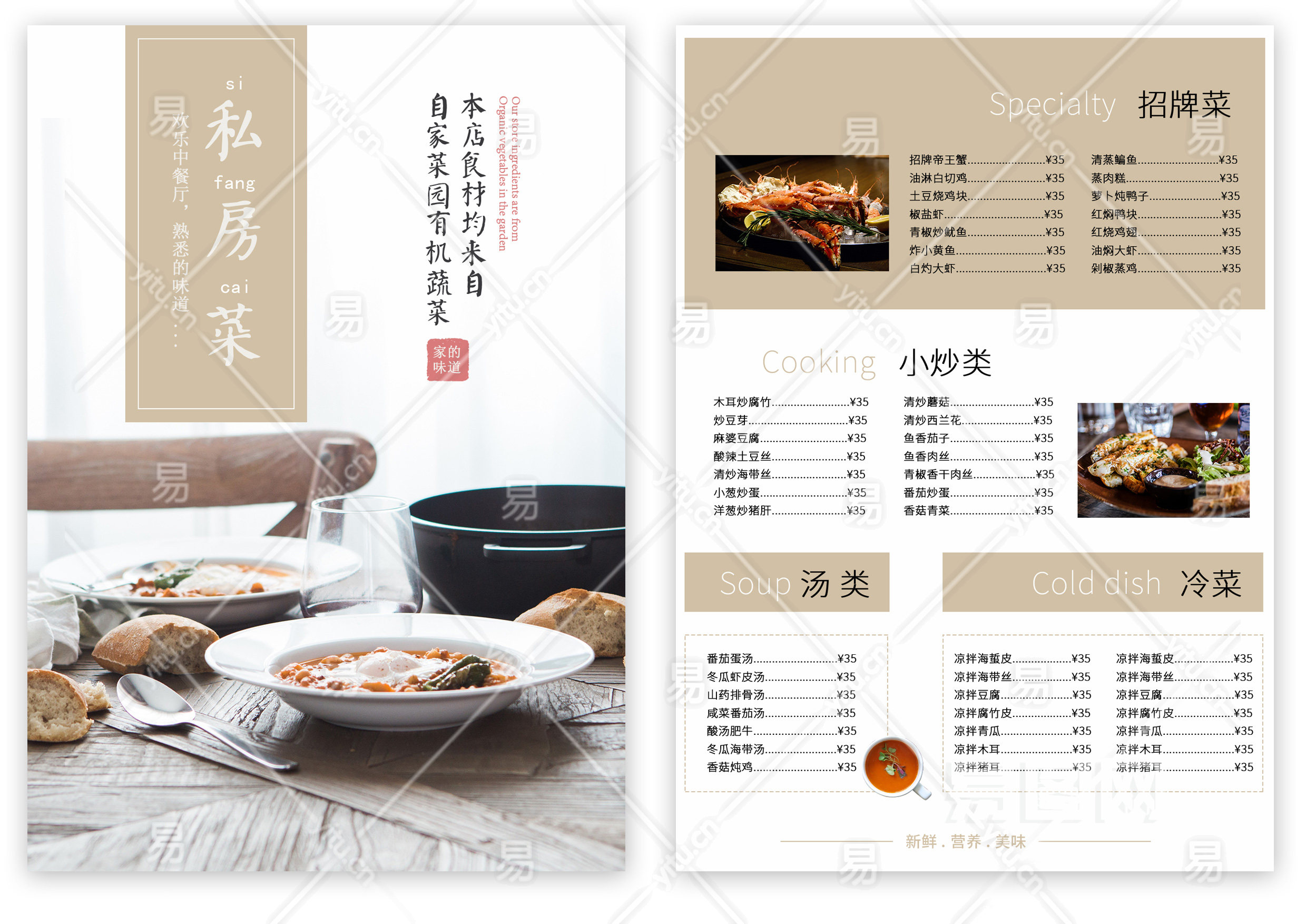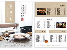 浅卡其色私房菜餐厅菜单菜谱中餐厅