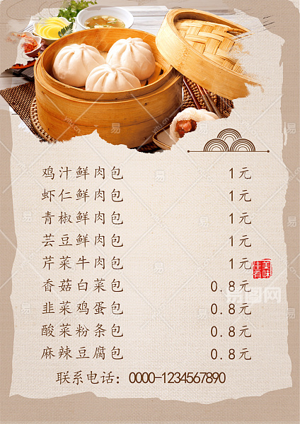 米浅棕包子菜谱菜单价格表海报