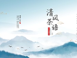 蓝色中国风清风茶语宣传画册封面