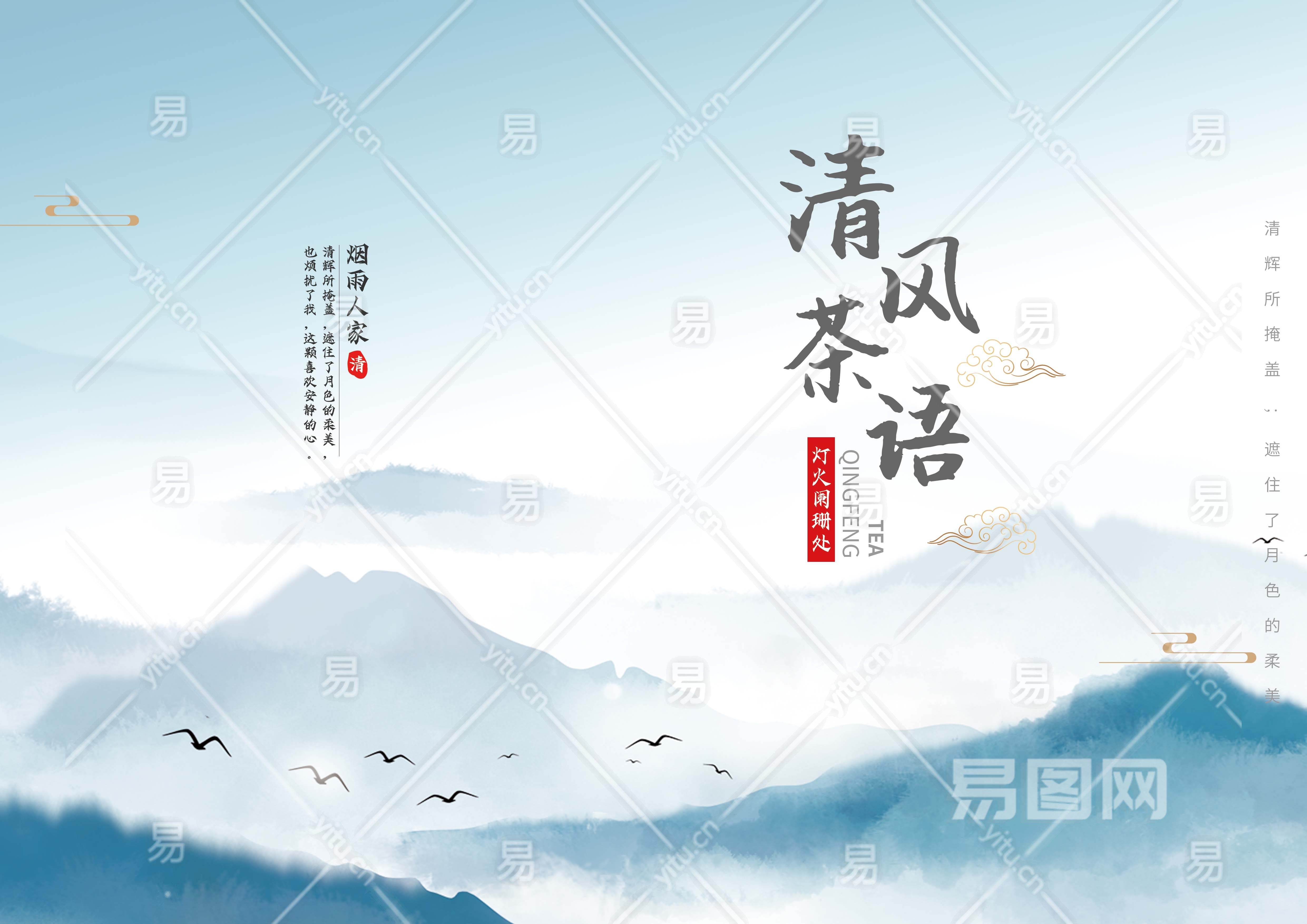 当前的位置:首页 > 广告设计 > 画册/装帧 > 其它 > 蓝色中国风清风茶语宣传画册封面
