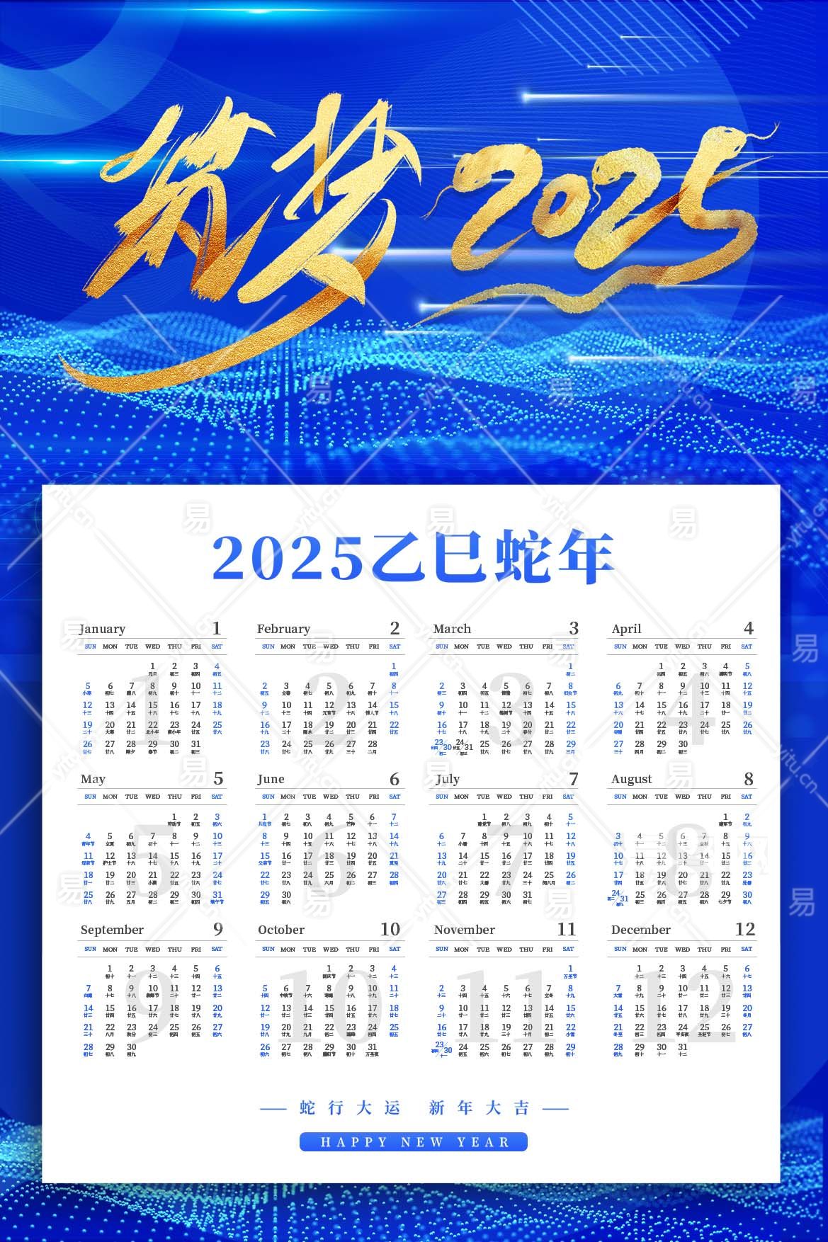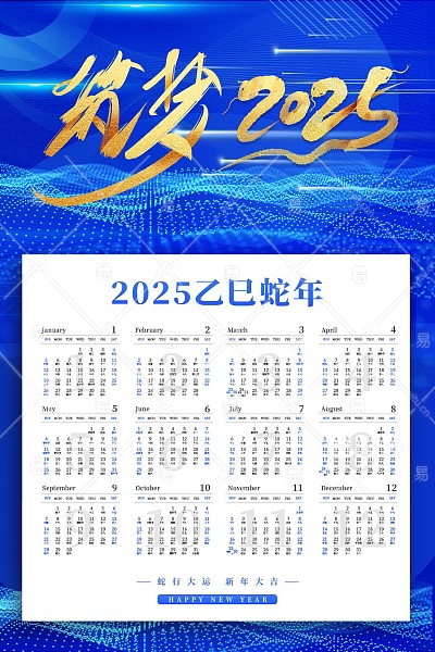 蓝色商务风新年台历挂历