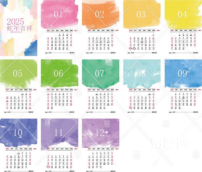水彩蛇年2025日历