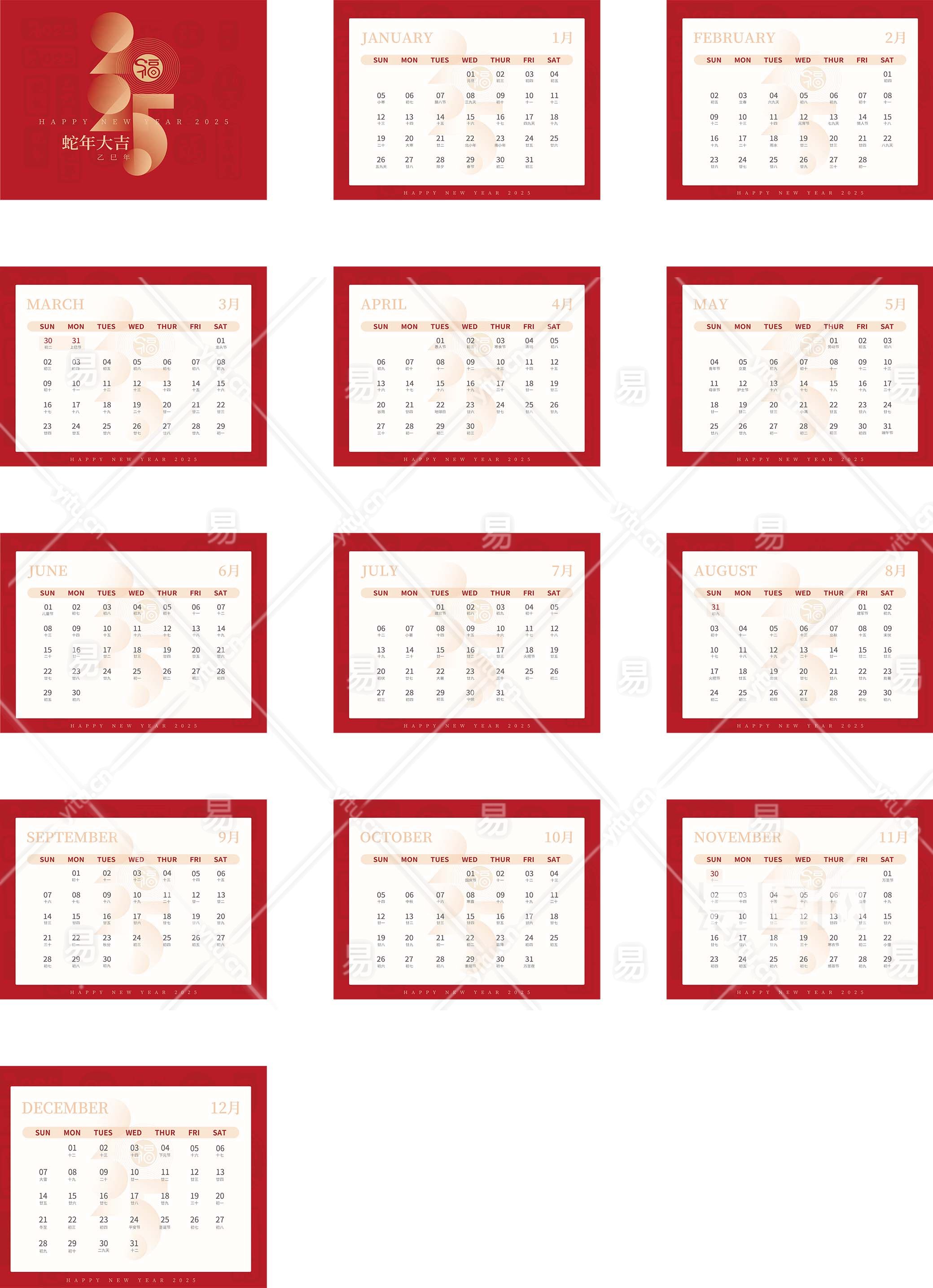 蛇年大吉红色金色挂历