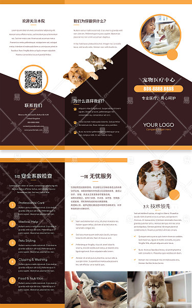 咖色简约大气宠物店三动物宠物医疗中心宣传折页