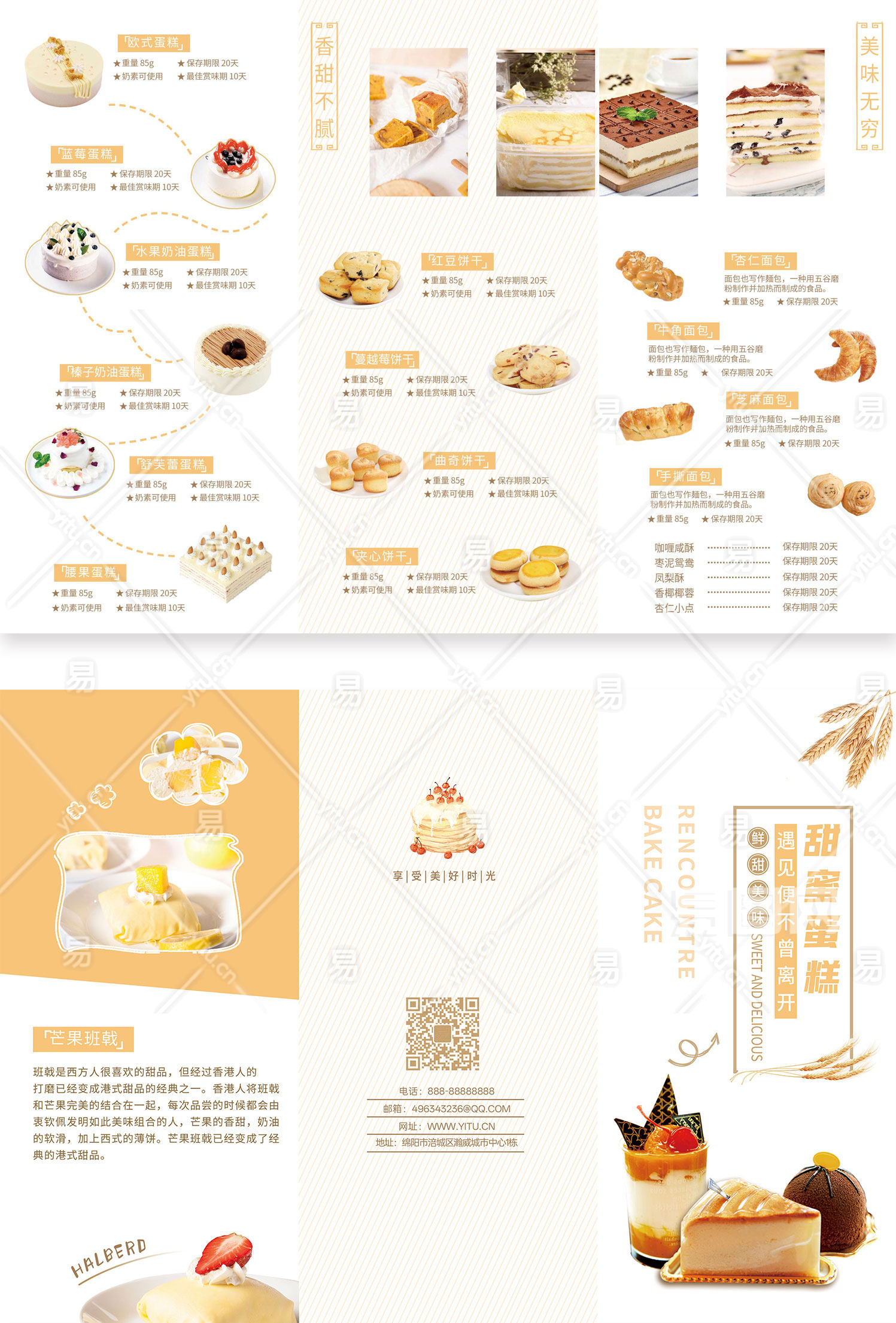 黄色简约甜蜜蛋糕烘焙三折页宣传单蛋糕三折页
