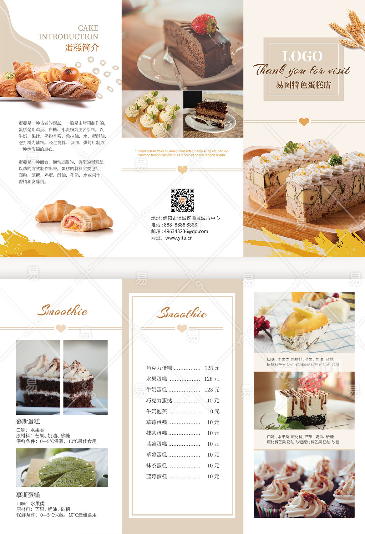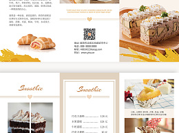 米色简约淡雅风格蓝色调烘焙三折页模板蛋糕三折页