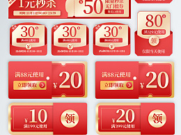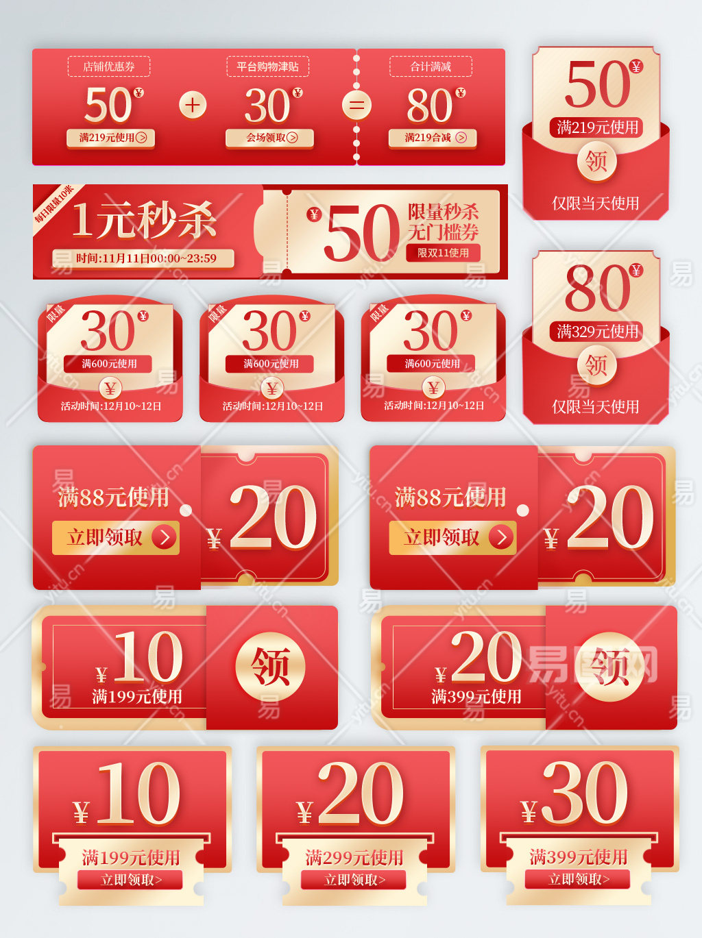 红色金色通用拼多多直播红包促销满减优惠券标签
