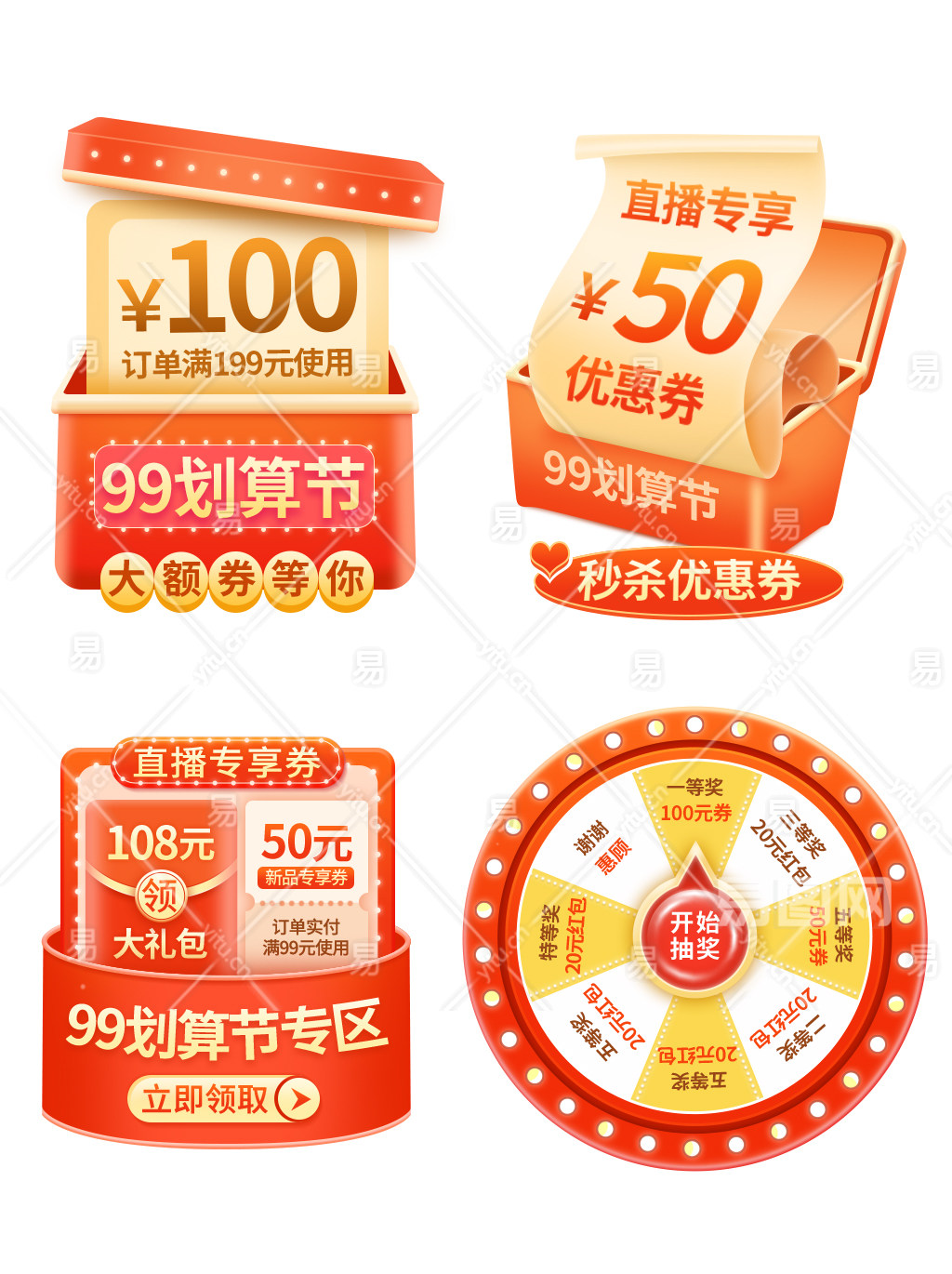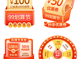 橙红色平面风格通用99划算节活动优惠99划算节弹窗优惠券