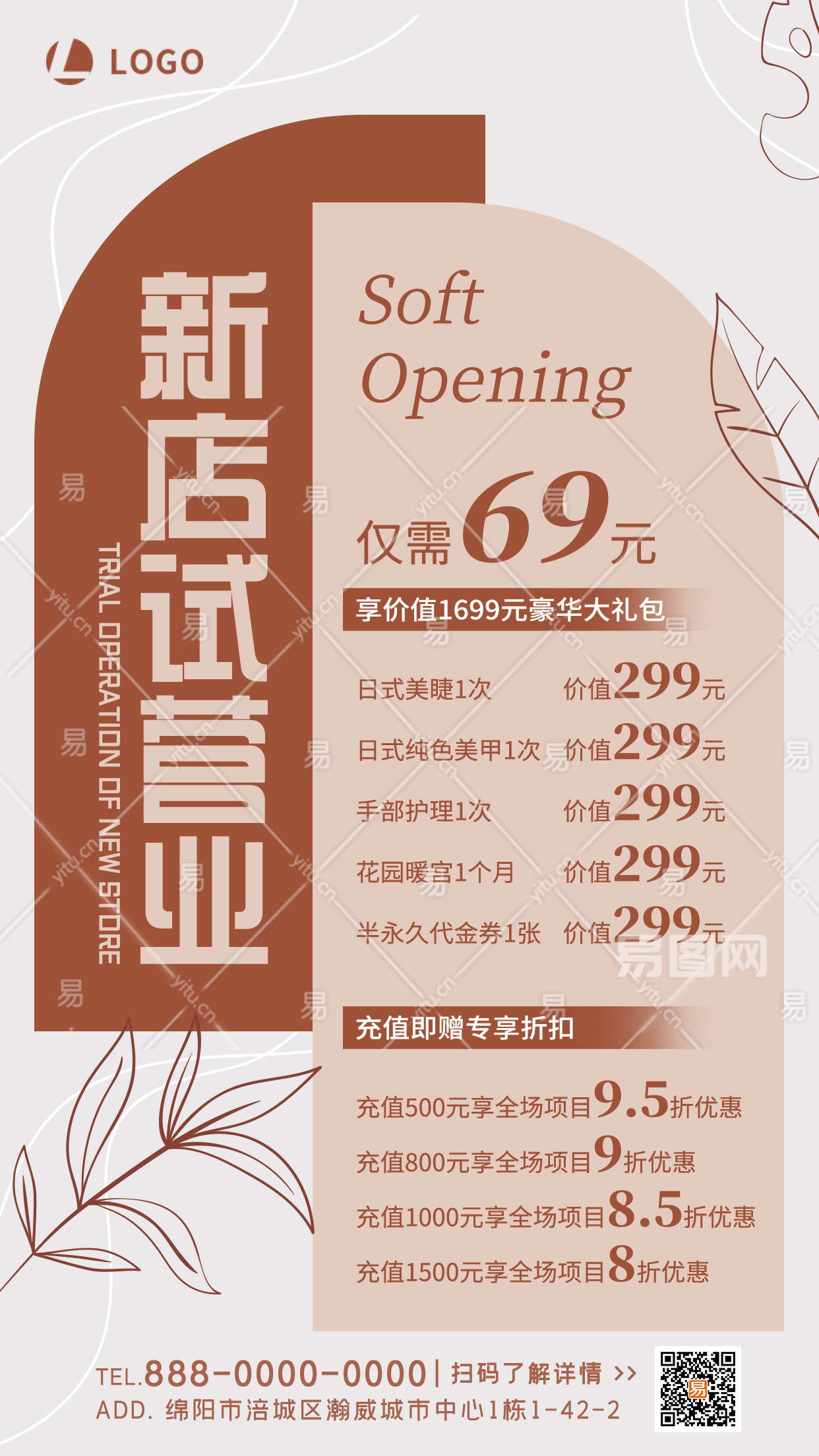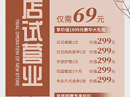 米色咖色简约素雅新店试营业美容护肤开业价格表手机文案海报