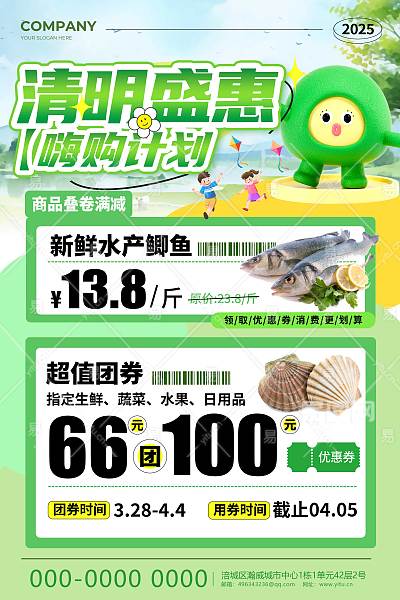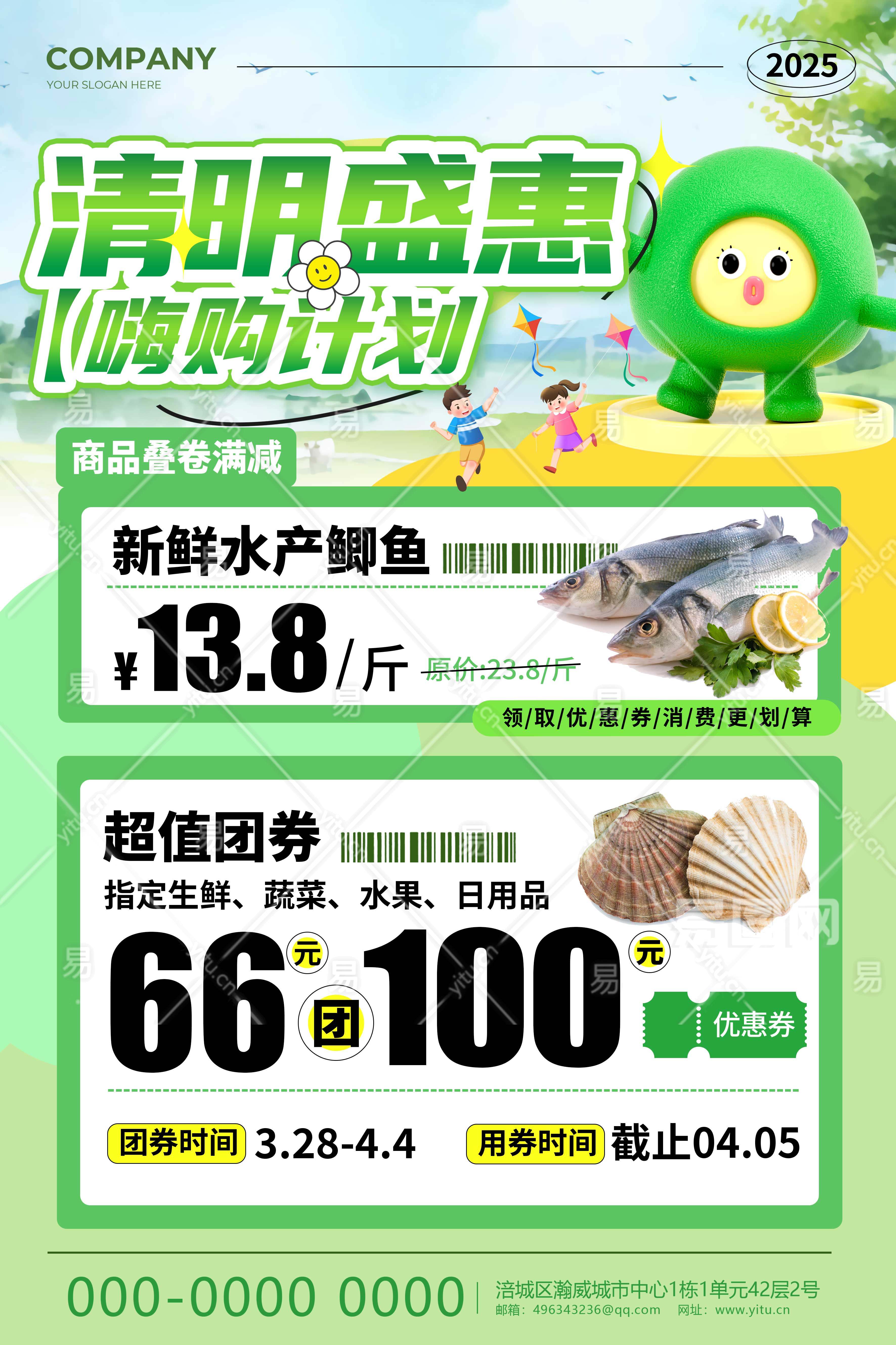 当前的位置:首页 > 广告设计 > 名片/卡证 > 标价牌/吊牌 > 绿色插画风格清明盛惠清明超市购物价格牌清明促销海报清明节海报