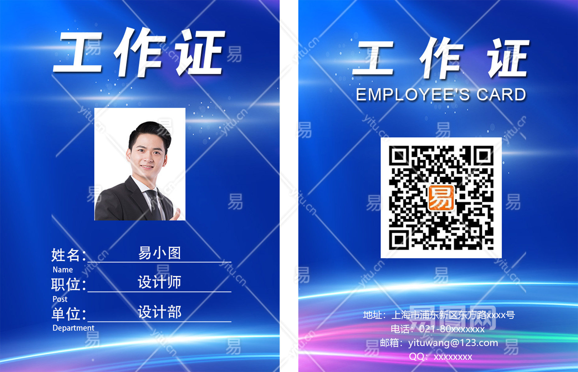 当前的位置:首页 > 广告设计 > 名片/卡证 > 工作证模板 > 蓝色大气商务工作证