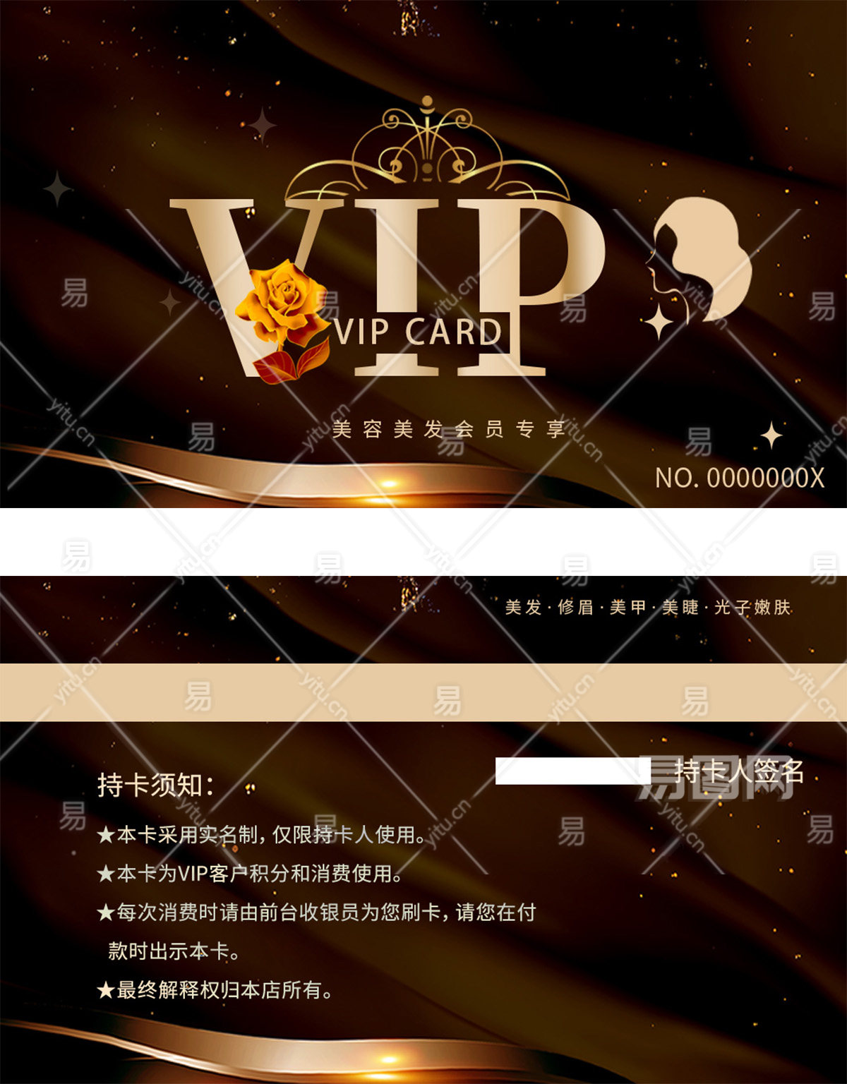 当前的位置:首页 > 广告设计 > 名片/卡证 > 会员卡 > 黑金尊贵美容大气会员卡