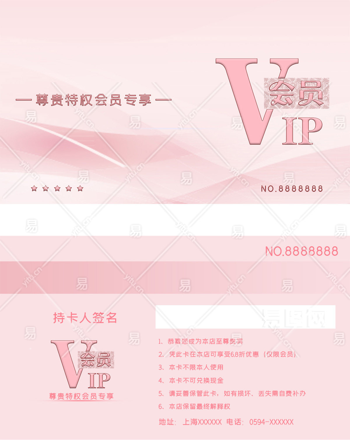 当前的位置:首页 > 广告设计 > 名片/卡证 > 会员卡 > 粉色清醒美容会员卡