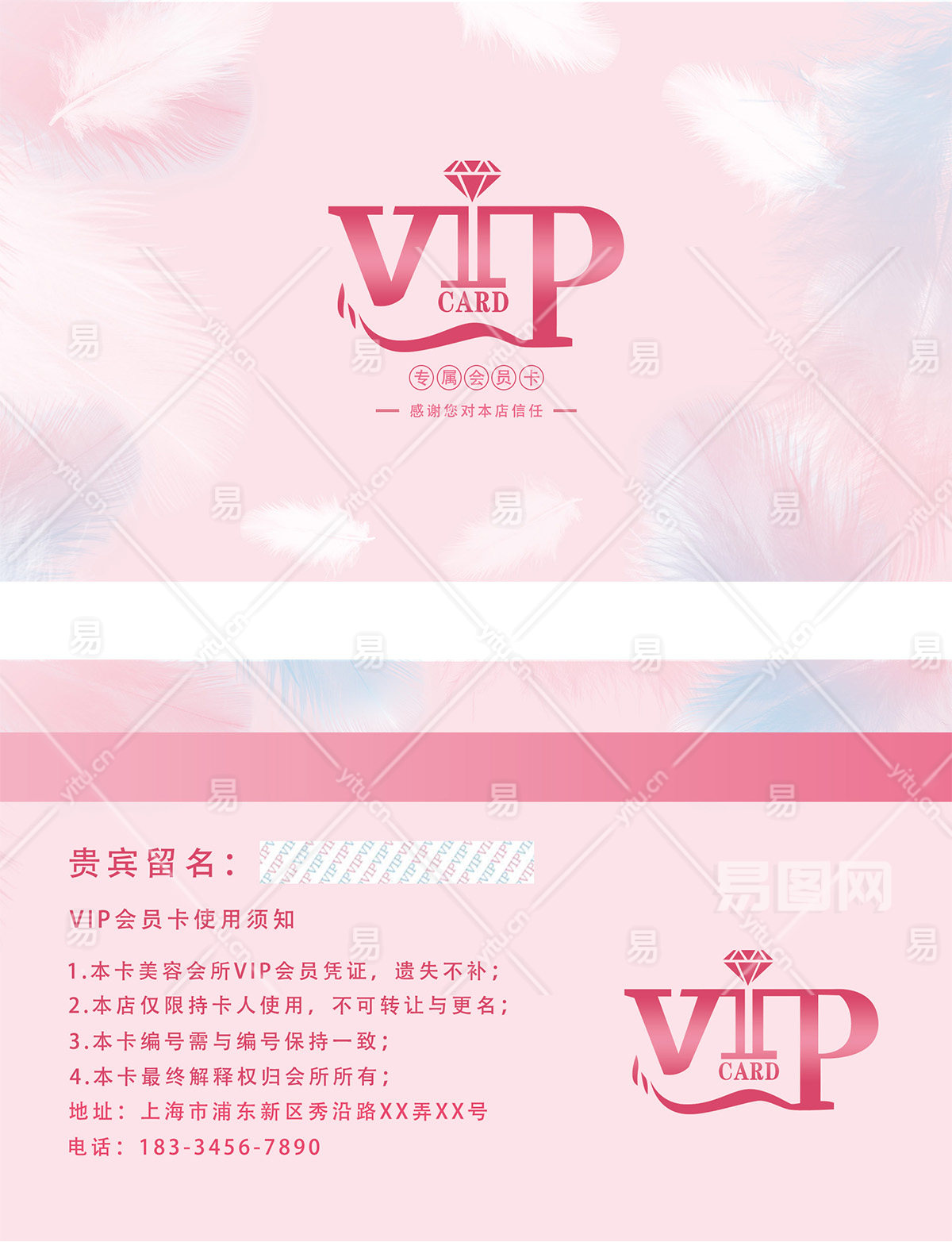 当前的位置:首页 > 广告设计 > 名片/卡证 > 会员卡 > 粉色唯美灵感美容会员卡