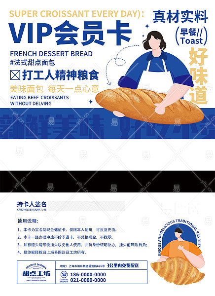 当前的位置:首页 > 广告设计 > 名片/卡证 > 会员卡 > 简约大字风甜品面包会员卡