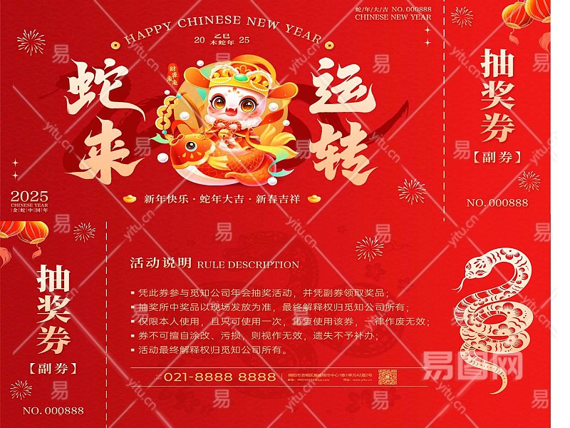 红色大气蛇来运转抽奖券优惠券2025蛇年新年春节年会抽奖券