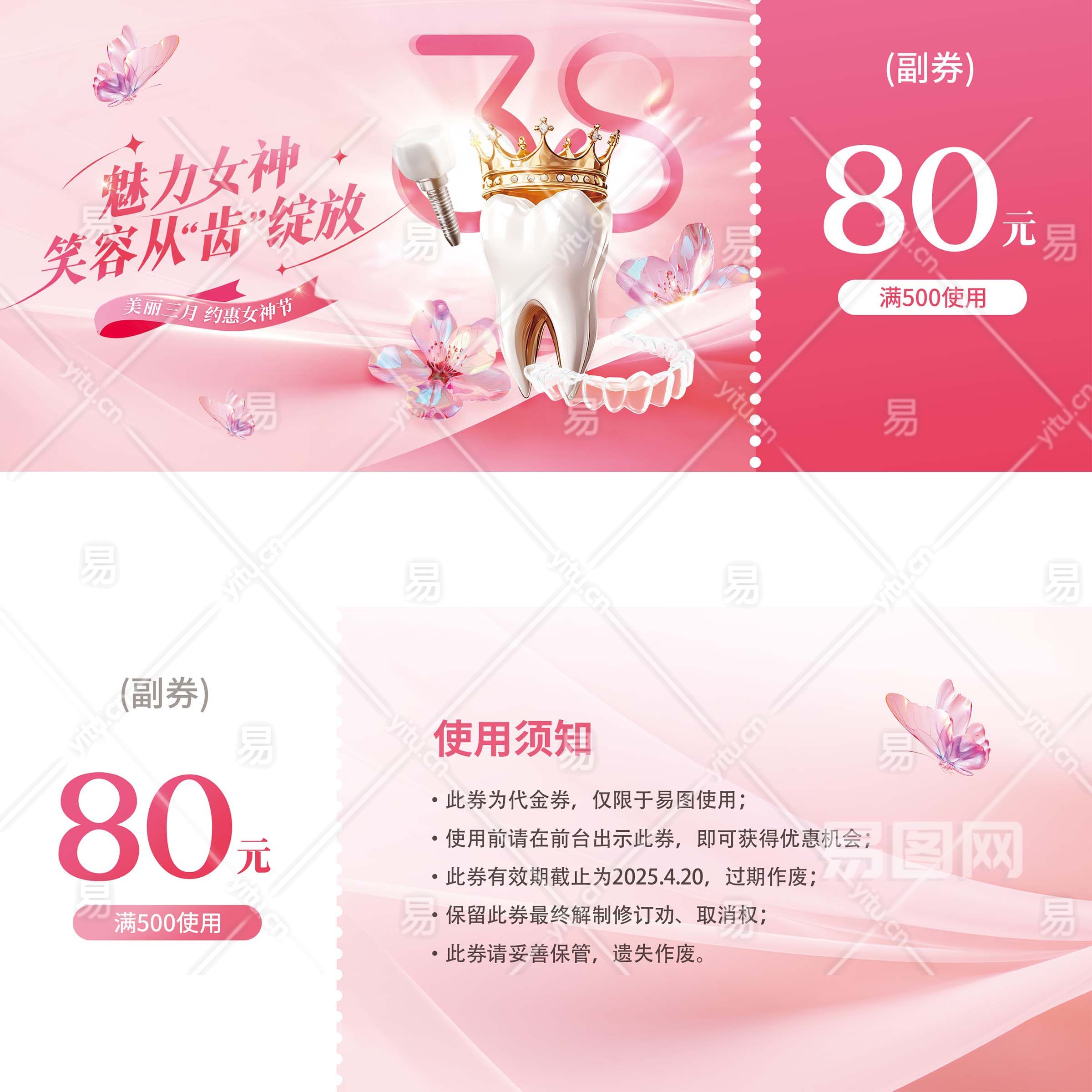 当前的位置:首页 > 广告设计 > 名片/卡证 > 优惠券 > 妇女节口腔营销促销代金券优惠券