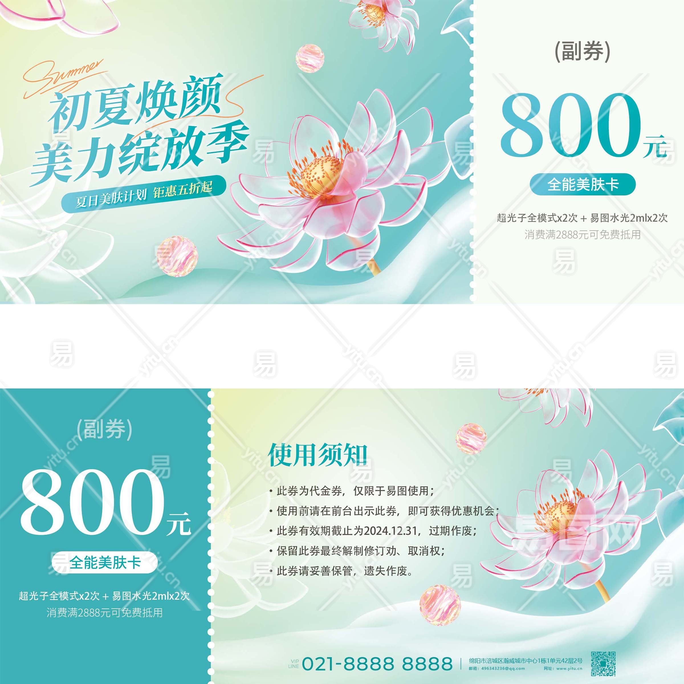 当前的位置:首页 > 广告设计 > 名片/卡证 > 优惠券 > 医美美容初夏营销促销活动优惠券代金券