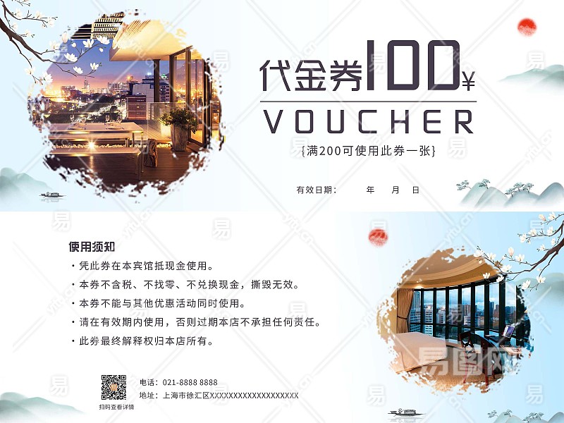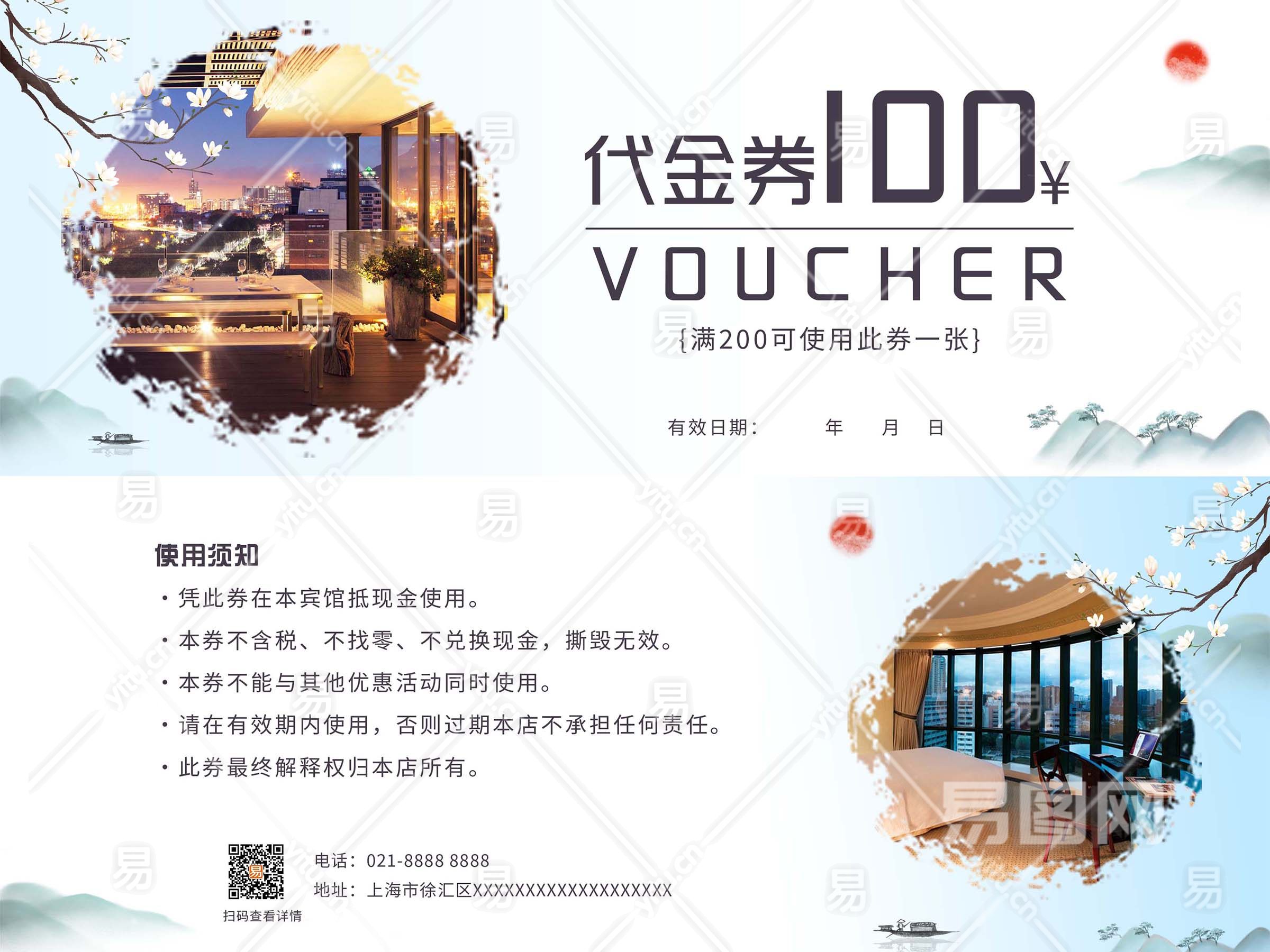 中国风水墨代金券酒店宾馆代金券优惠券酒店优惠券