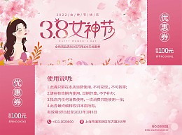 粉色樱花唯美38女神节三八女神节女神节优惠券女神节优惠券
