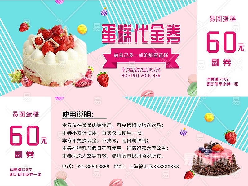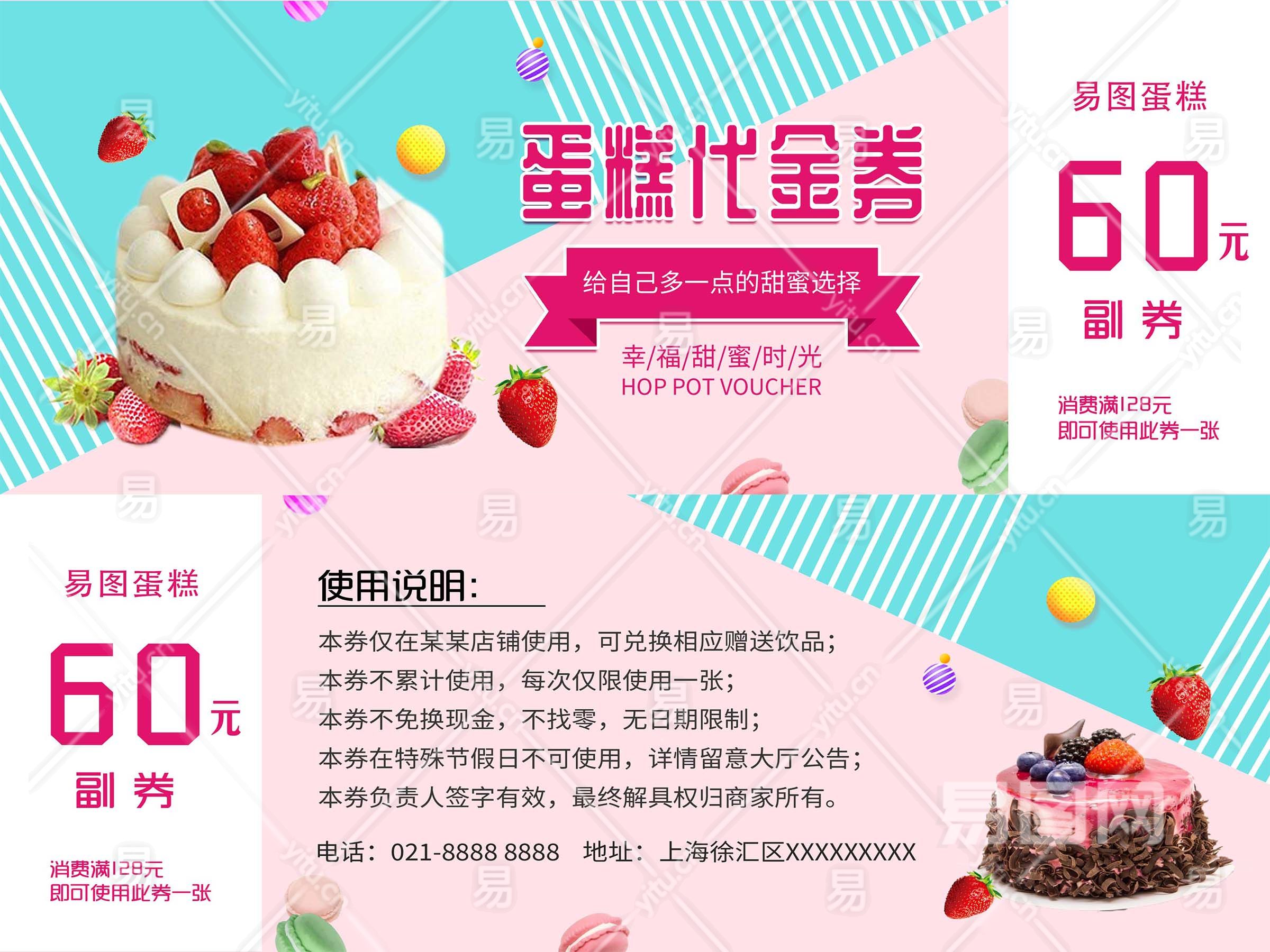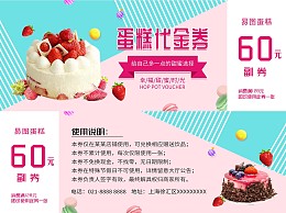 甜美风格蛋糕代金券蛋糕店优惠券60元消费券优惠蛋糕代金券优惠