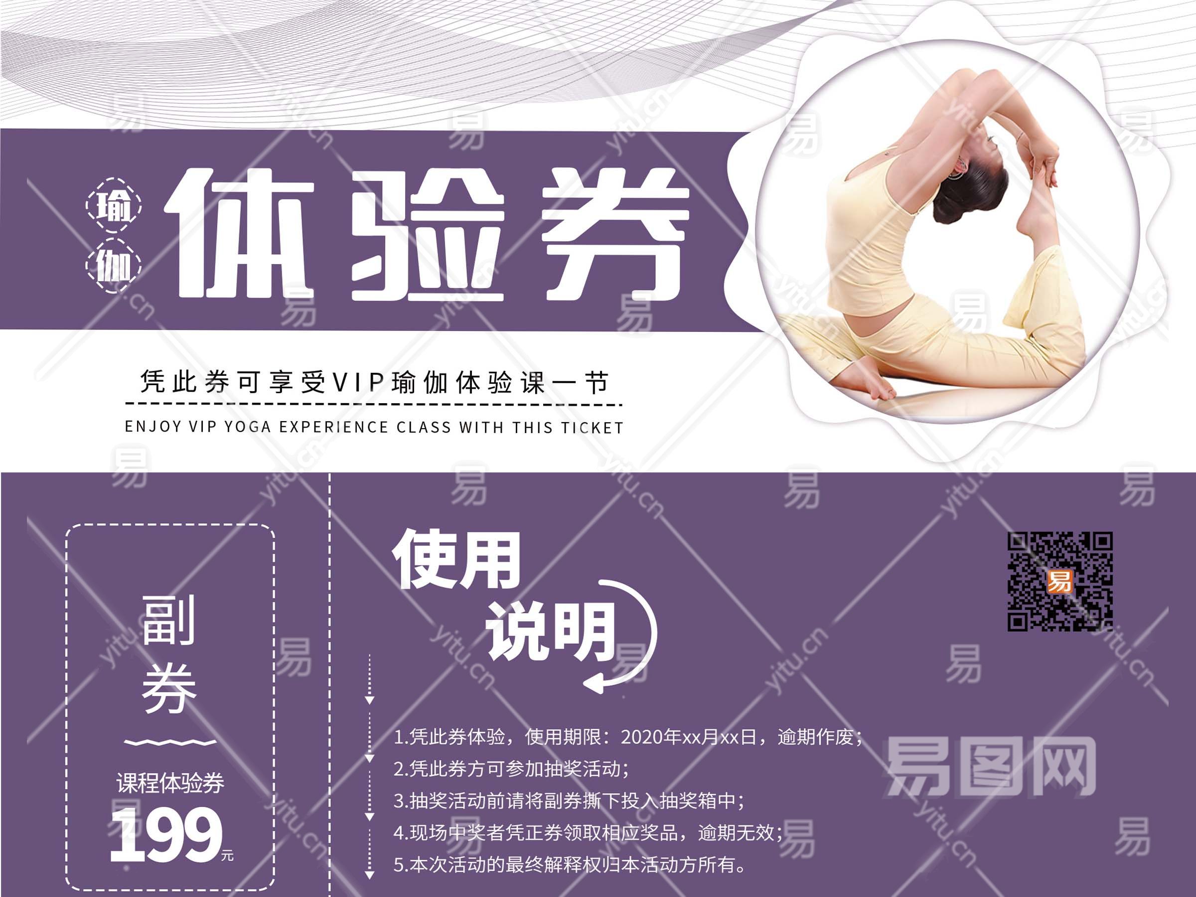 当前的位置:首页 > 广告设计 > 名片/卡证 > 优惠券 > 紫色简约卡券瑜伽体验券优惠券