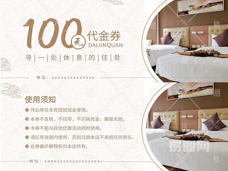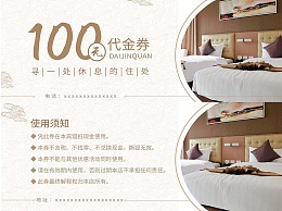 浅色高级简约大气宾馆100元抵用券宾馆酒店民宿代金券宾馆代金券