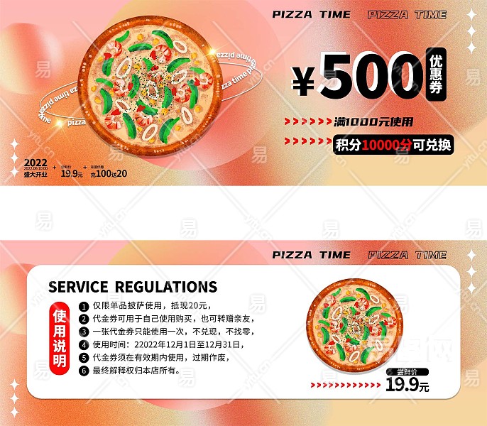 当前的位置:首页 > 广告设计 > 名片/卡证 > 优惠券 > 餐饮弥散汉堡披萨美食优惠券代金券