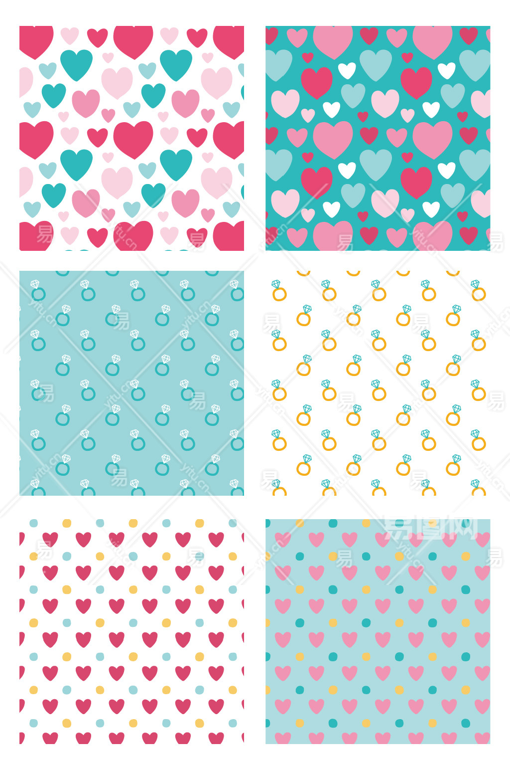 彩色爱心钻戒矢量拼接填充艺术几何背景