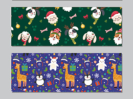 圣诞节矢量卡通动物无缝填充包装纸壁纸图案