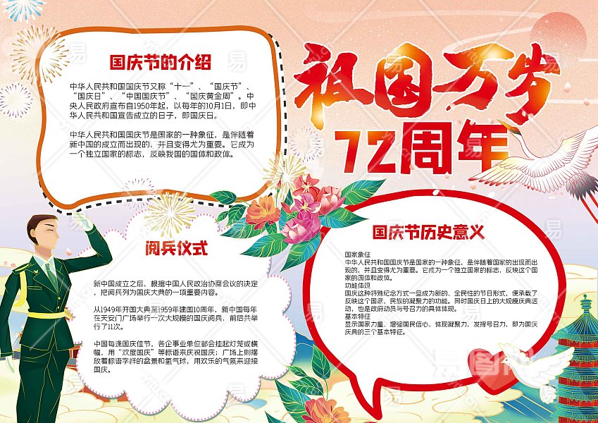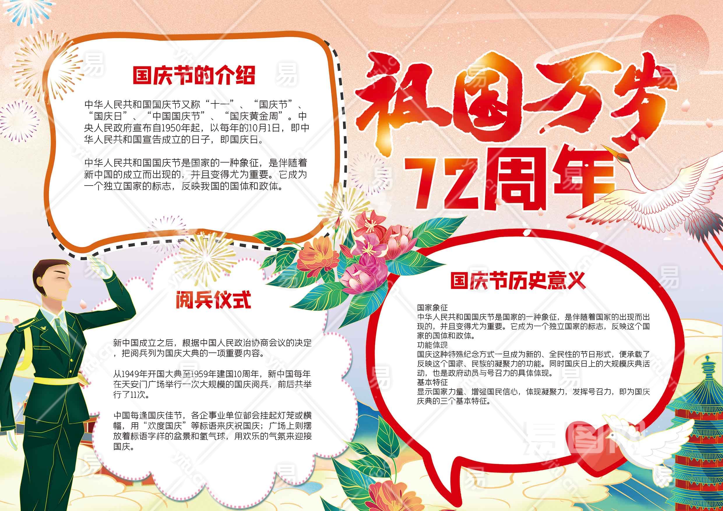 祖国万岁72周年手抄报