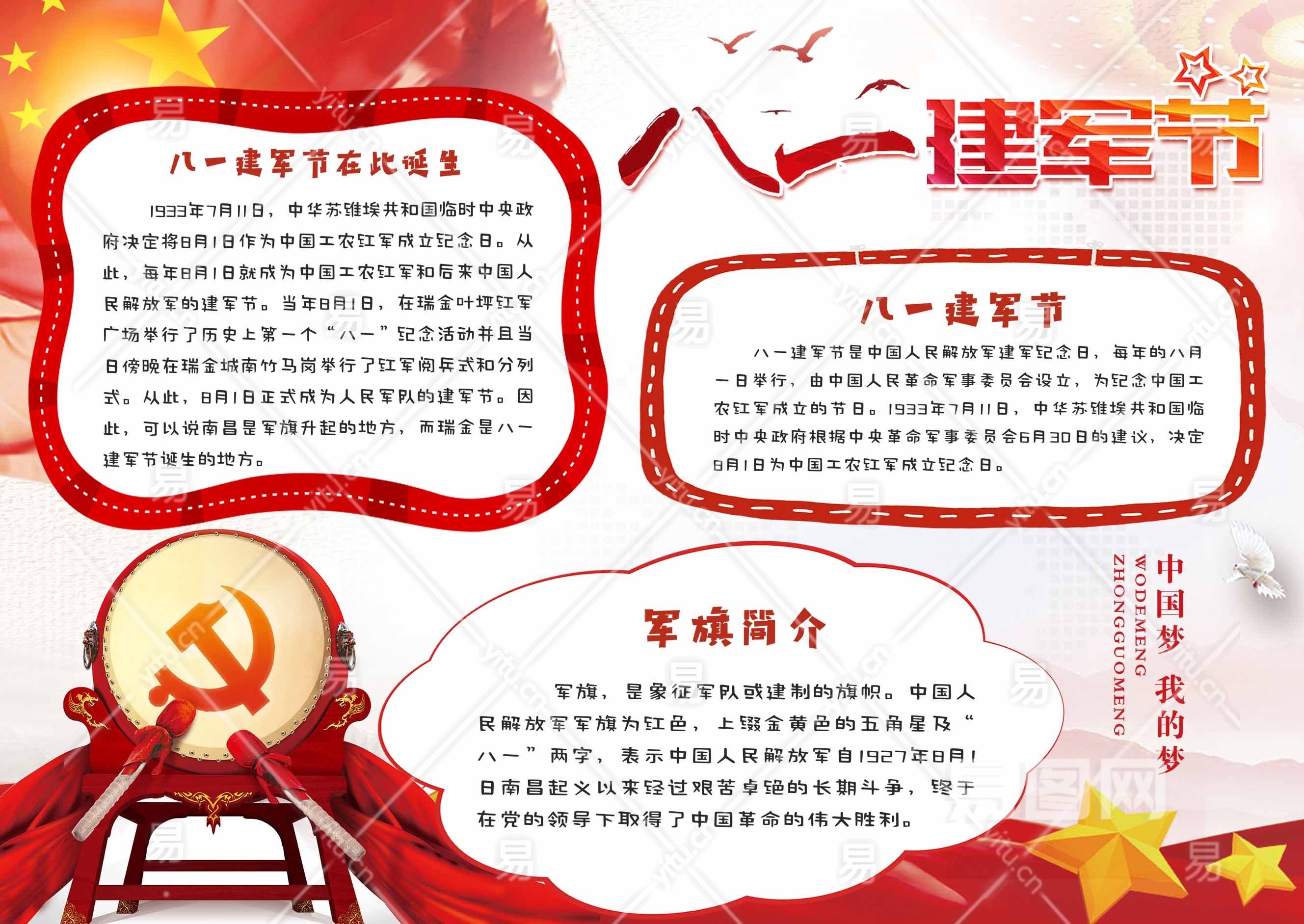 当前的位置:首页 > 广告设计 > 手抄报/小报 > 党建/市政手抄报 > 红色中国风八一建军节手抄报