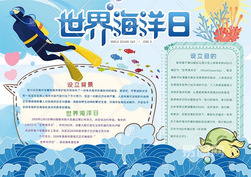 当前的位置:首页 > 广告设计 > 手抄报/小报 > 节日手抄报 > 世界海洋日手抄报