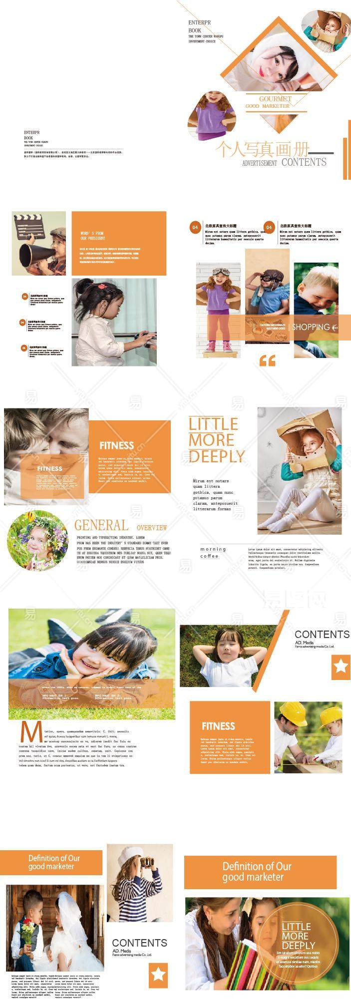 当前的位置:首页 > 广告设计 > 相册/影楼 > 个人摄影模板 > 浅色个人橙色画册清新画册