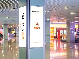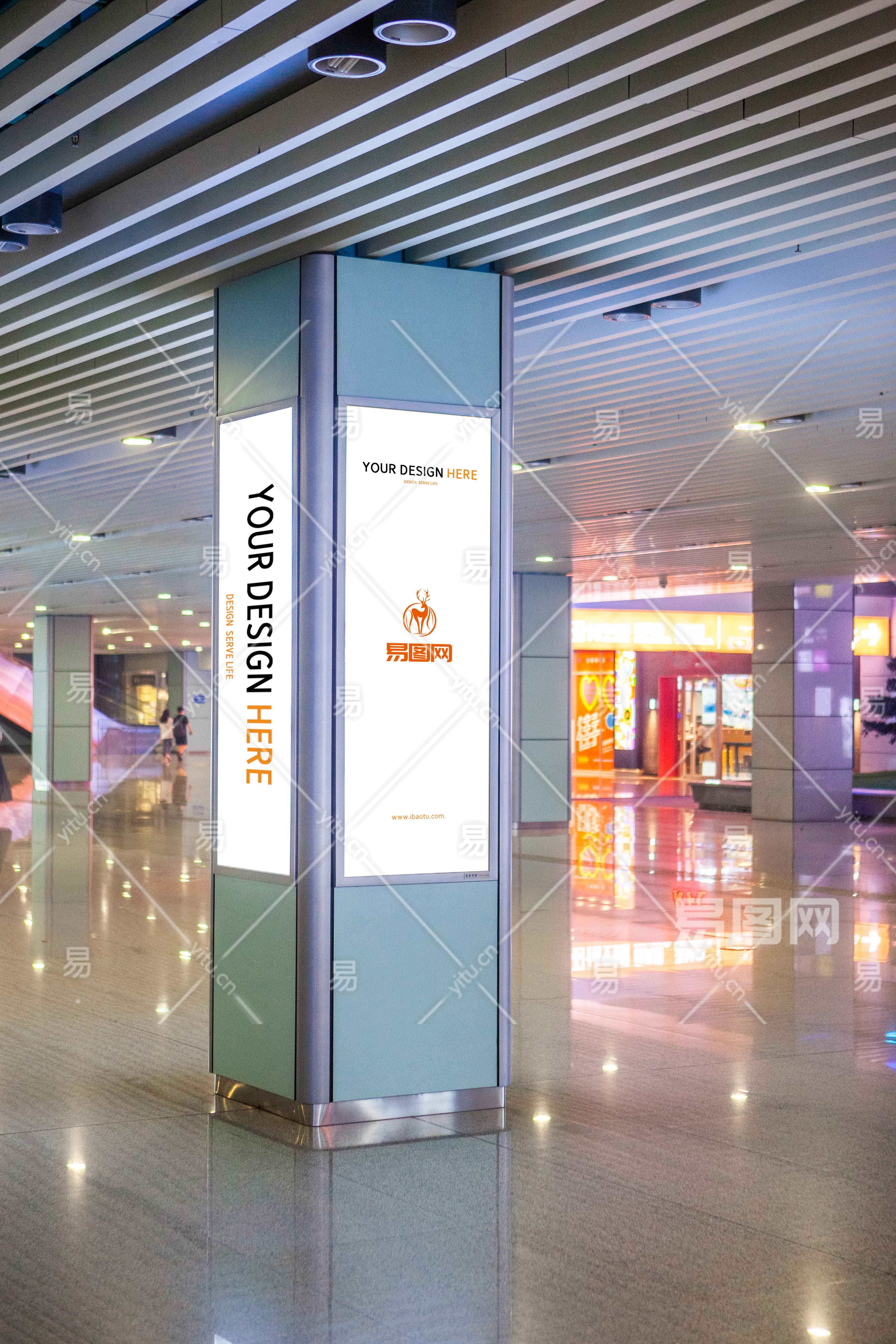 购物商场内部立体柱广告牌海报样机