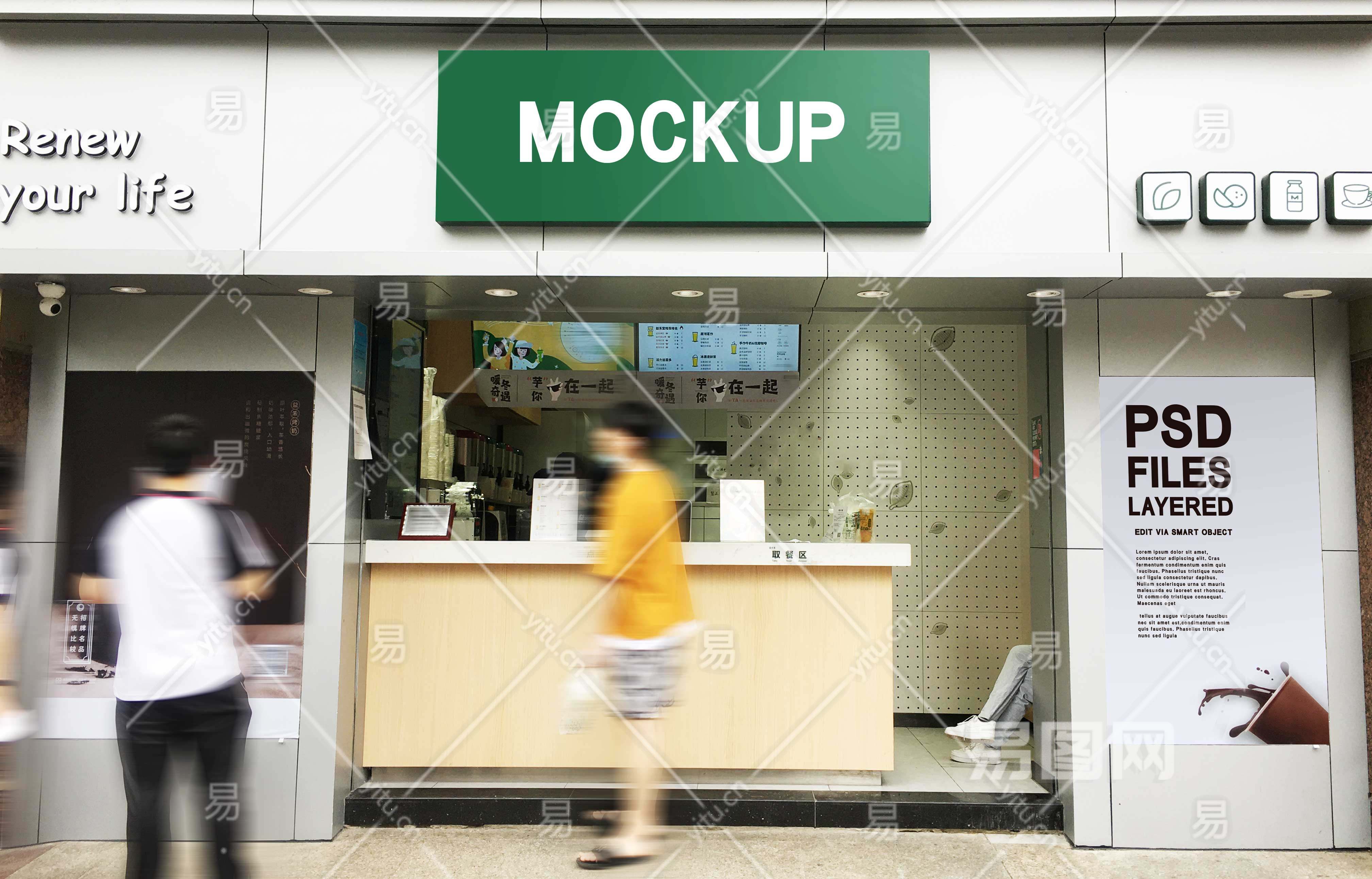 当前的位置:首页 > 广告设计 > 样机素材 > 场景样机 > 奶茶店顾客购物海报门头门字架招牌场景样机