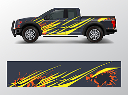 黄黑、越野车车辆包装设计向量皮卡卡车贴花纸包装设计向量