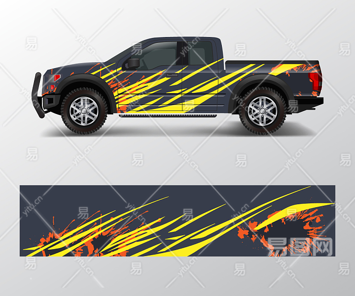 当前的位置:首页 > 广告设计 > 样机素材 > 汽车样机 > 黄黑、越野车车辆包装设计向量皮卡卡车贴花纸包装设计向量