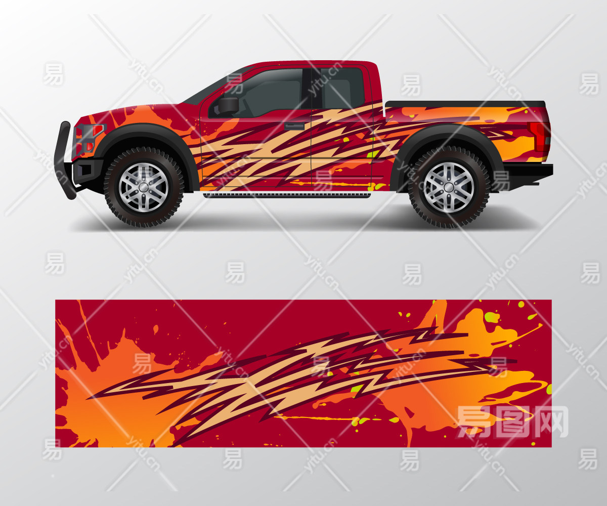 当前的位置:首页 > 广告设计 > 样机素材 > 汽车样机 > 红卡车货物的包装向量车贴花纸包装设计图形摘要条纹设计车辆比赛越野车冒险制服车
