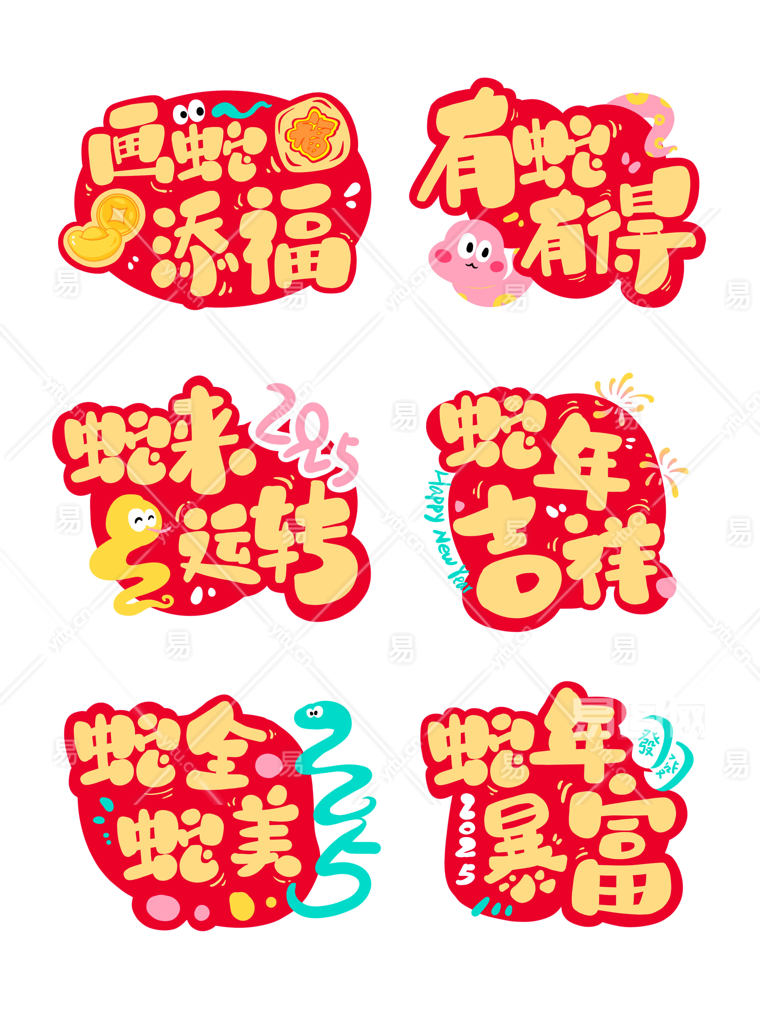红色蛇年春节新年祝福手举牌免抠素材