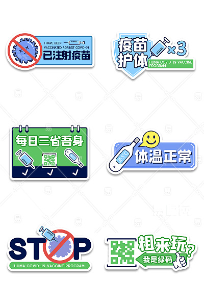 绿蓝疫情防控绿码温度计疫苗护体手举牌