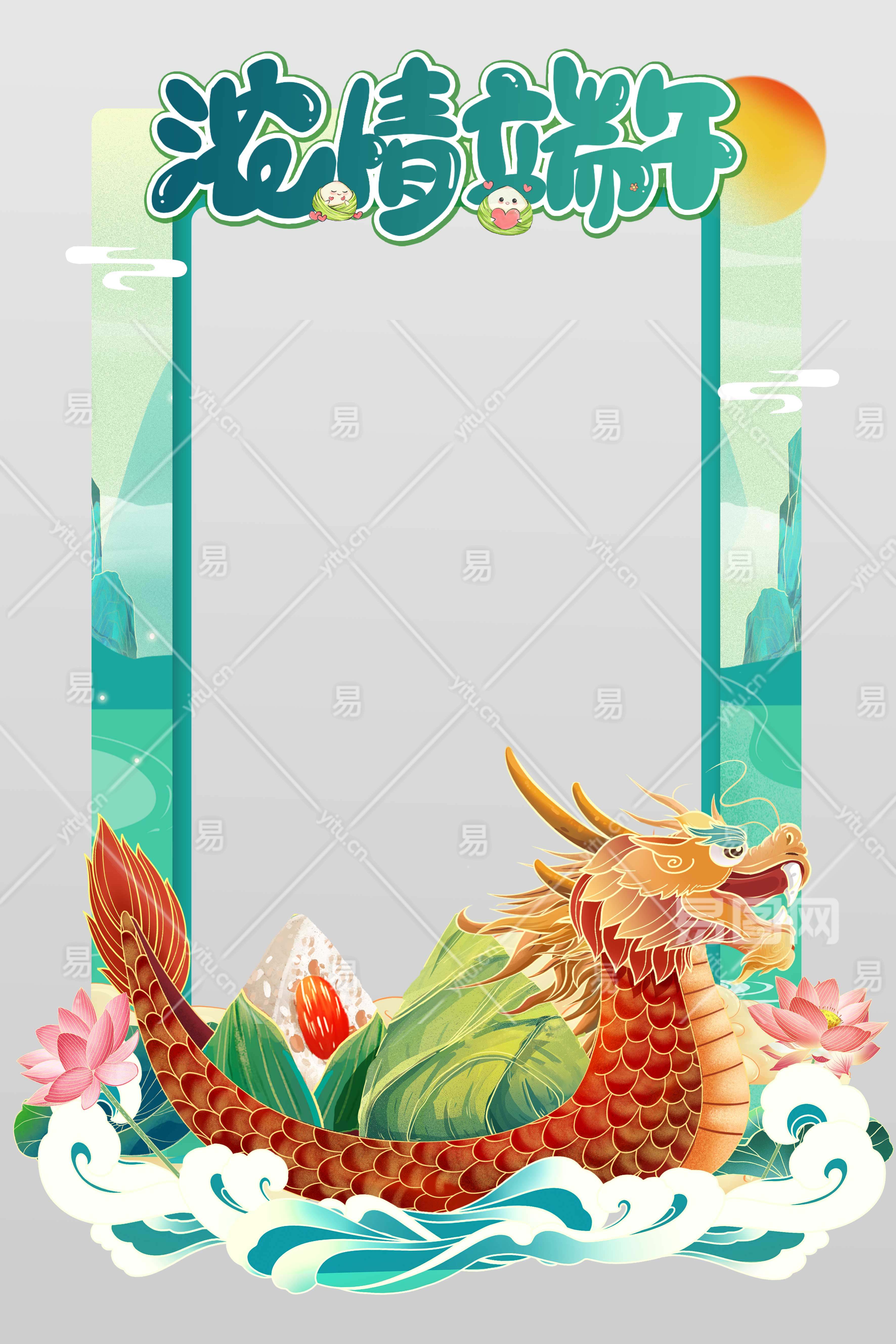 绿色 国潮插画浓情端午节拍照框端午节端午拍照框
