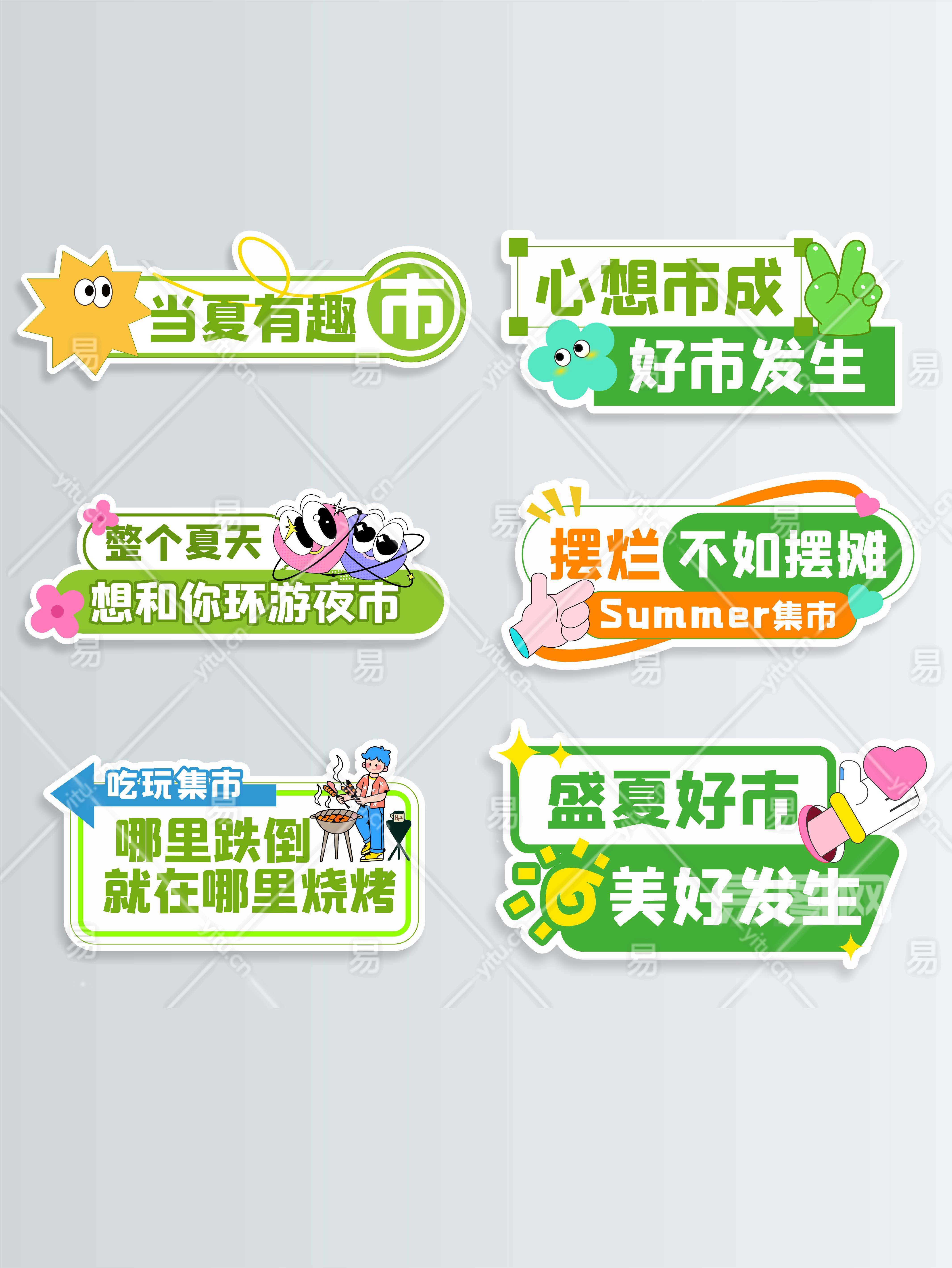 绿夏日市集夜市摊位活动手举牌kt板合影牌