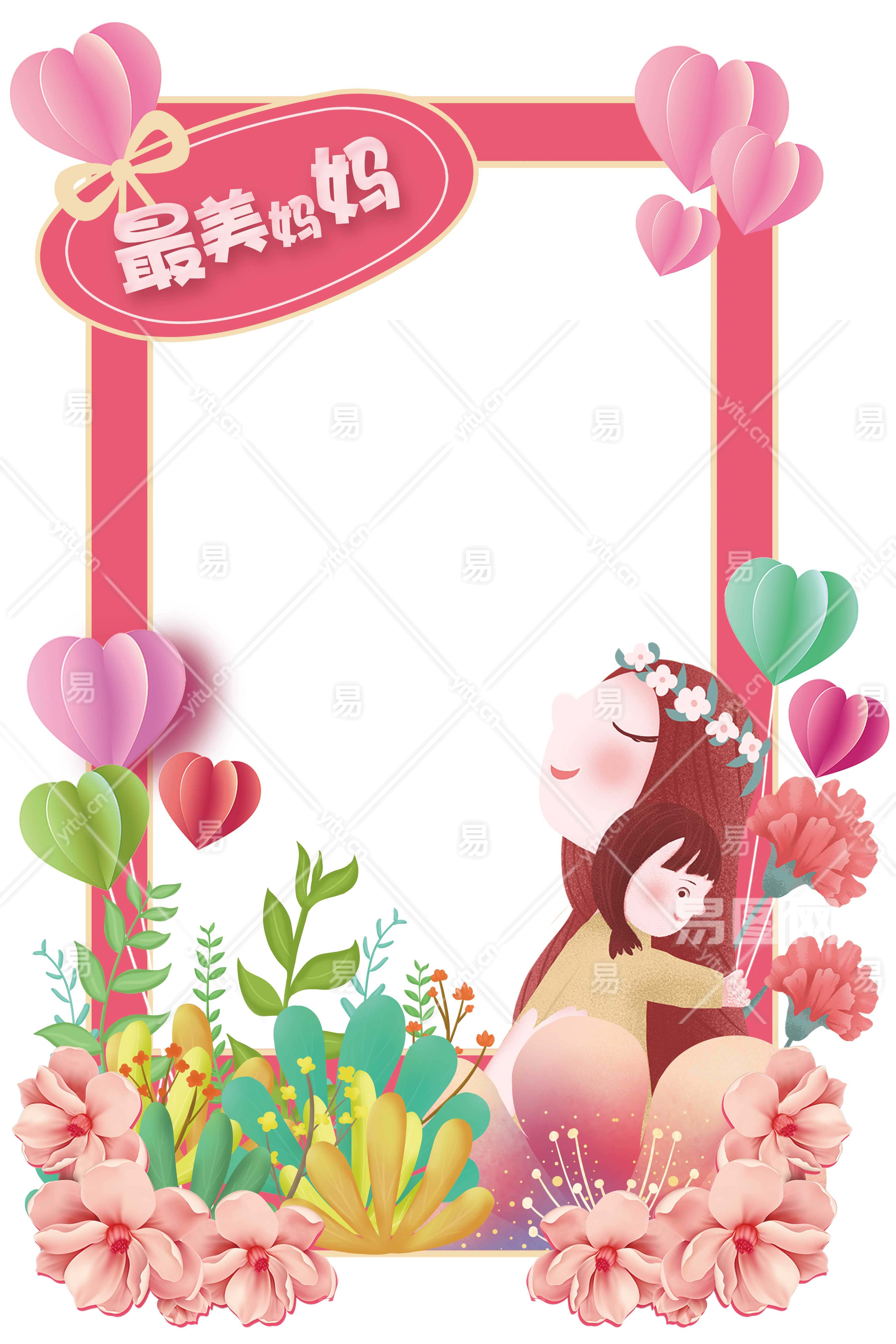 粉色卡通 最美妈妈 母亲节 照片相框母亲节手举牌
