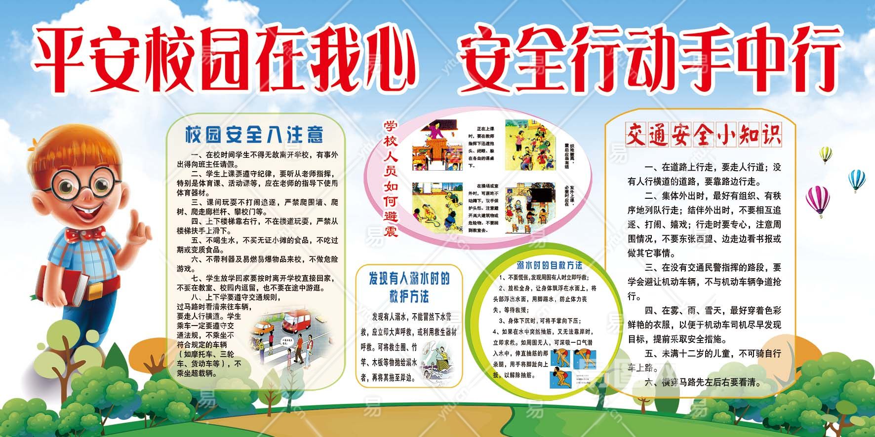 当前的位置:首页 > 广告设计 > 展板/展架 > 安全/公益展板 > 中小学安全教育日校园安全展板平安校园在我心安全行动手中行交通安全
