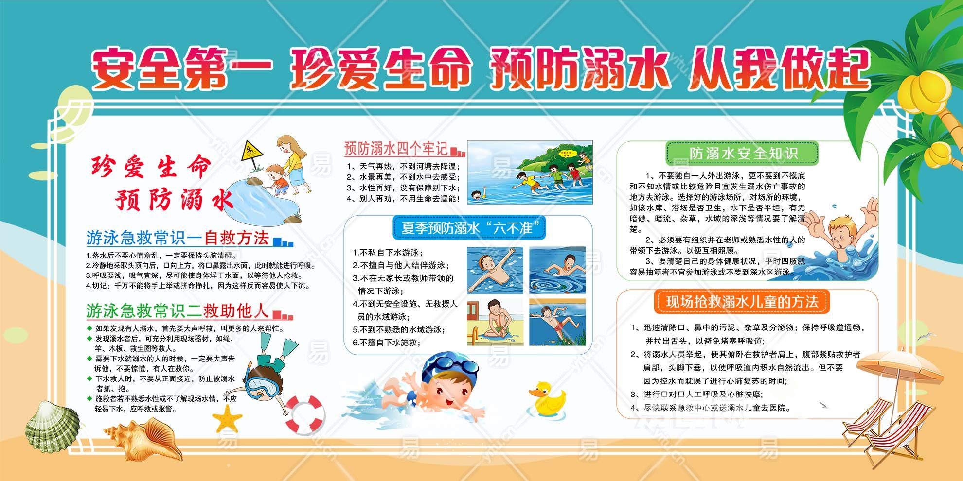 蓝色卡通安全第一珍爱生命预防溺水从我做起暑假安全宣传展板